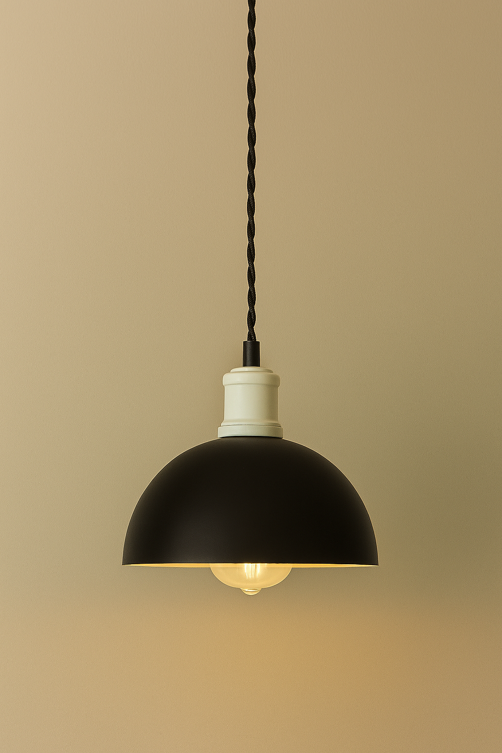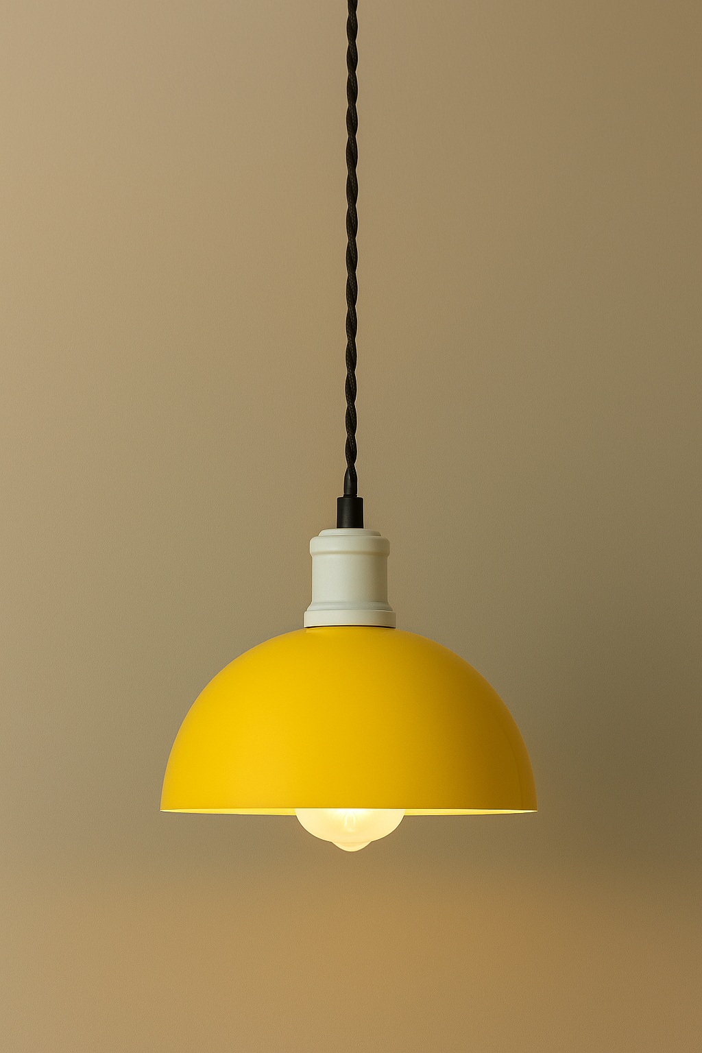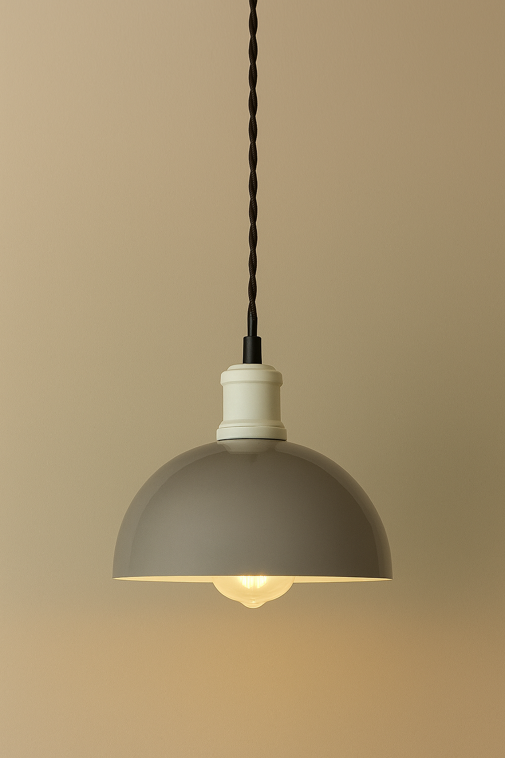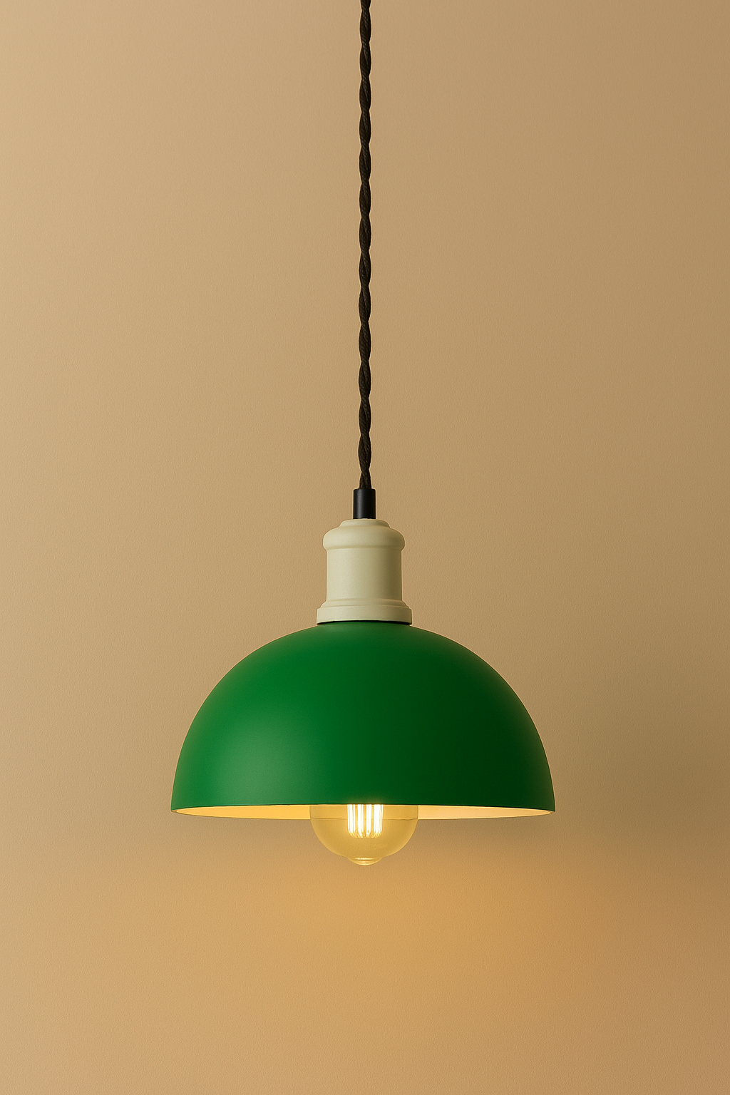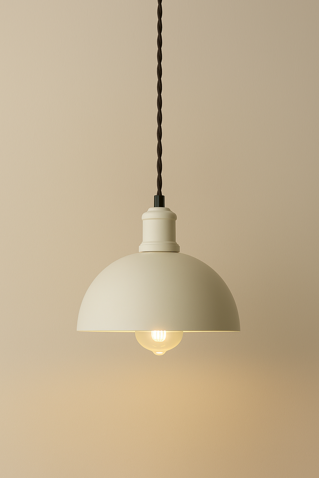 このペンダントライトは、クラシックなインダストリアルデザインをベースに、現代的なカラーパレットとミニマルなフォルムを融合させました。鉄製のシェードは粉体塗装で仕上げられており、上質な質感と柔らかな手触りが絶妙に調和し、空間に洗練された温かみを添えます。