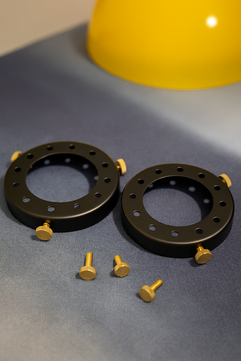 丈夫なスチール製リングに、質感のある真鍮製ビスを組み合わせ、